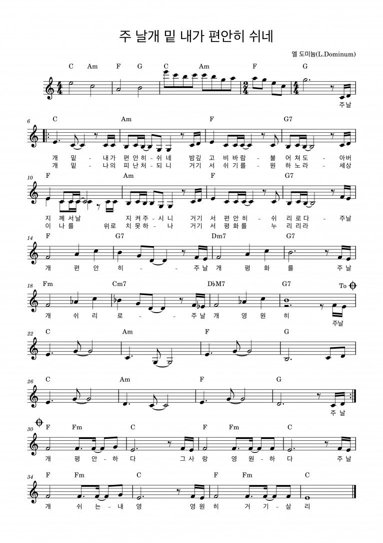 [악보] 주 날개 밑 내가 편안히 쉬네 - L. Dominum (LoudateDominum 라우데테 도미늄: 하나님을 찬양하라)